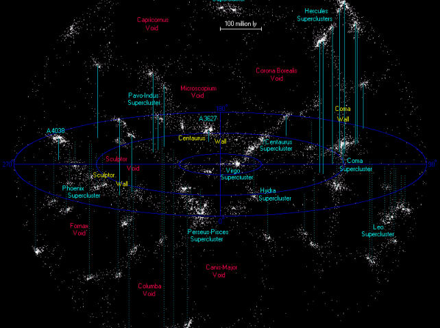 Supercluster, and beyond, larger superclusters.